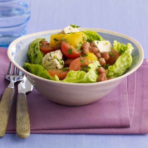 Zomersalade met geroosterde paprika en borlottibonen
