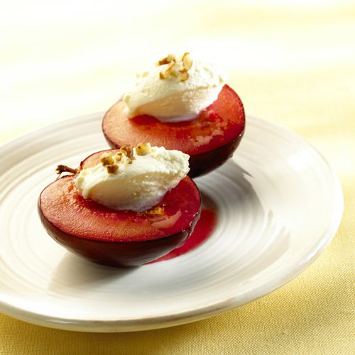 Gegrilde pruimen met een vulling van koffiemascarpone