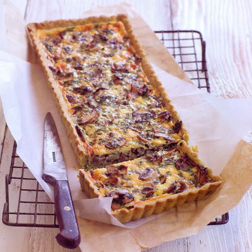 Quiche van peterseliedeeg met paddenstoelen