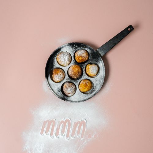 Zorg dat je pan goed ingevet is en er een dun laagje boter of olie op de bodem van de kuiltjes ligt. Dit maakt het makkelijker om de balletjes te draaien. Herhaal deze stap ook wanneer je weer een nieuwe batch gaat maken. Zeker belangrijk bij een gietijzeren pan! Zorg dat de pan heet genoeg is voordat je begint. Laat als test een druppeltje water in de pan vallen, als deze meteen sist is het goed. Zorg er ook voor dat je pan niet te heet wordt, anders wordt de aebleskiver van binnen niet gaar. Laat de pan altijd op middelhoog vuur.