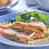 Leg 2 lasagnevellen op een plank. Verdeel de helft van de zalm er gelijkmatig over. Beleg elke laag zalm met nog 2 lasagnevellen, avocado, nog 2 lasagnevellen en de resterende zalm. Eindig elk stapeltje met 2 lasagnevellen. Snijd elk stapeltje doormidden. Snijd elke helft diagonaal doormidden. Leg de 2 stapeltjes op een bord.